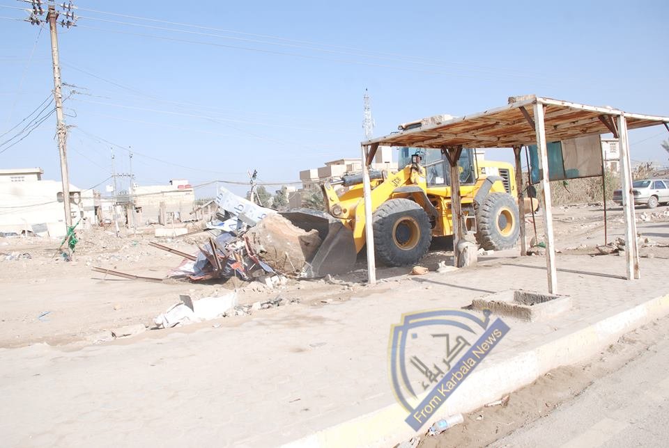 بلدية كربلاء تنفذ حملة لإزالة التجاوزات في مدخل بغداد
