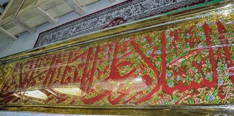 (السّلامُ على الدّماءِ السّائلاتِ) لوحةٌ معماريّةٌ تعلُوْ المذبحَ المقدّسَ