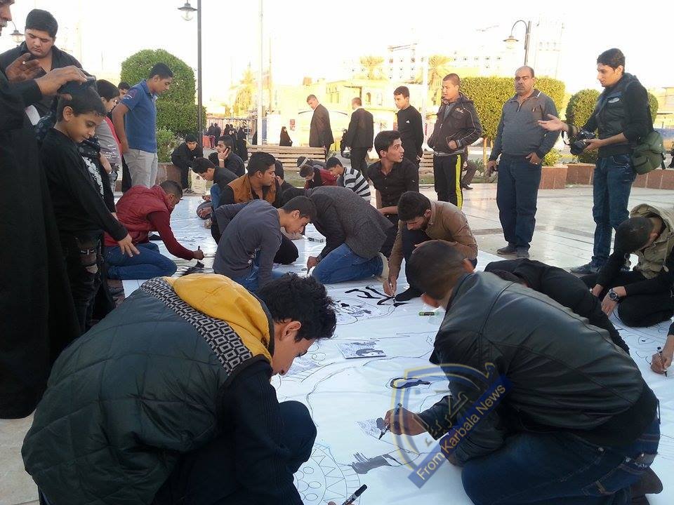 رسم اكبر لوحة فنية في كربلاء تعبر عن تاريخ العراق ورموزة