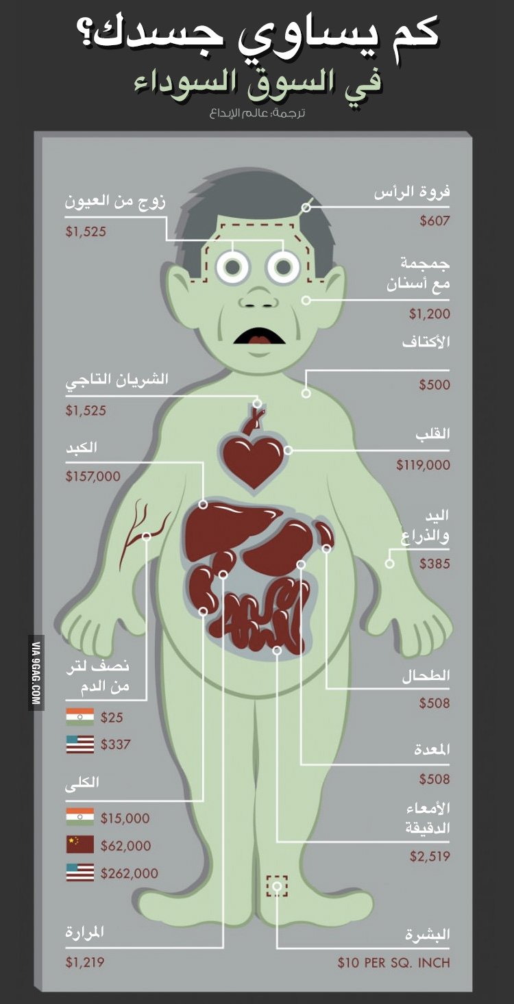 هل تعلم كم يساوي جسدك في السوق السوداء؟