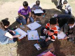 أطفال يرسمون في الهواء الطلق إحتفالا بمهرجان يوم كربلاء