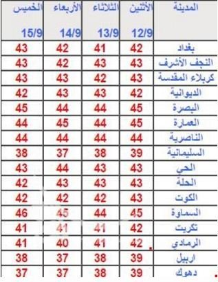 بالجدول... درجات الحرارة خلال ايام عيد الاضحى