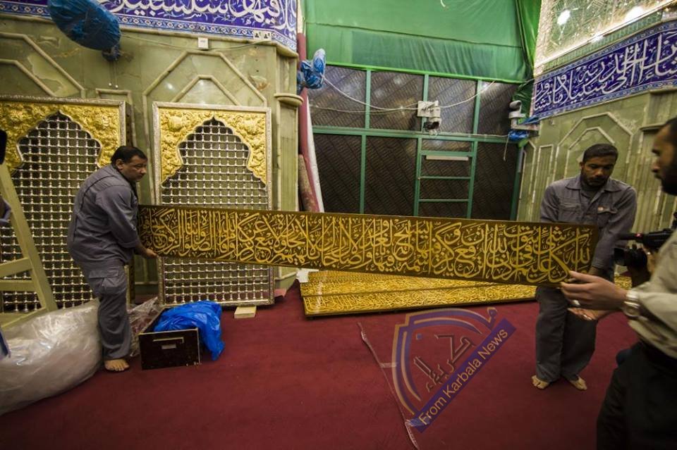 تركيب أول الكتائب القرانية الداخلية للشباك الجديد لضريح ابي الفضل العباس عليه السلام