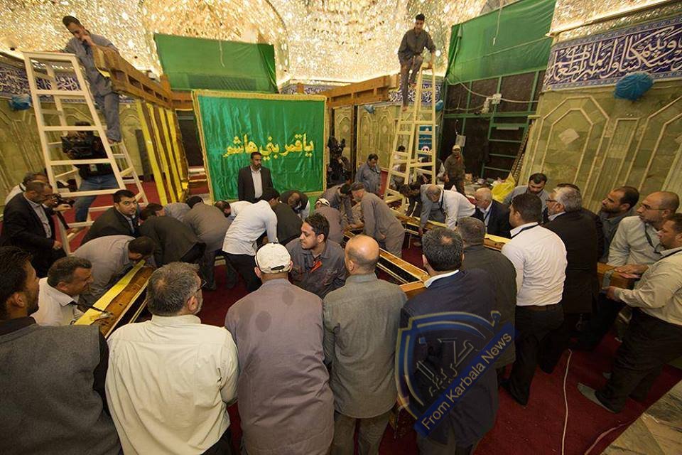 المباشرةُ بتنصيب الهيكل الخشبيّ لشبّاك ضريح أبي الفضل العبّاس(عليه السلام)