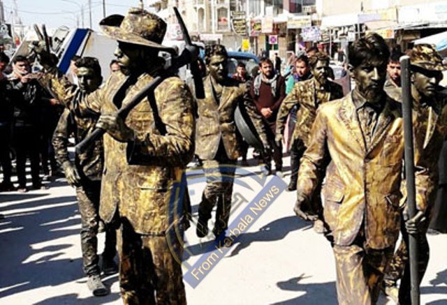 تماثيل تتحرك في الديوانية وتقول "بيدك تعمر بيدك تبني"