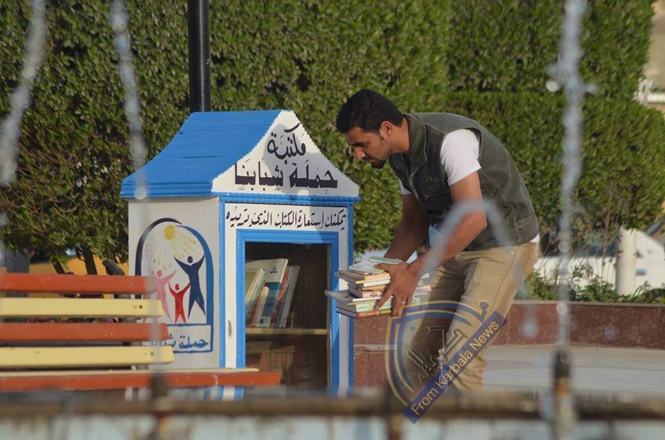 ضمن مبادرة لنقرأ اعضاء حملة شبابنا يضعون اول مكتبة حرة في كربلاء