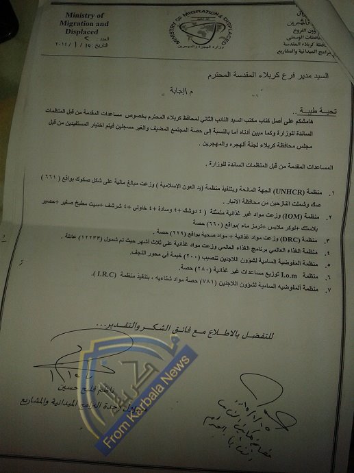 وقالت الوزارة في بيان تلقته "من كربلاء الخبر "، انه "بتوجيه من وزيرة الهجرة والمهجرين إيفان فائق جابرو، وزعت فرق الوزارة الميدانية 30 الفًا و 250 لتراً من مادة النفط الأبيض بين الأسر النازحة في مخيم الخازر (37كم) شرقي الموصل للاستخدام في التدفئة والطبخ".