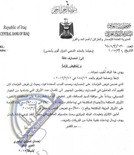 البنك المركزي يخفض الغرمات المفروضة على المصارف الى النصف