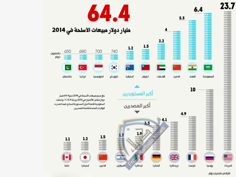 الهند والسعودية الأكثر استيراداً للأسلحة وبريطانيا وروسيا الاكثر تصديرا