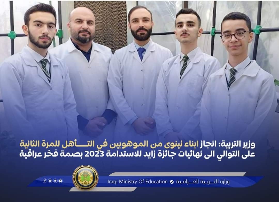 وزير التربية: تأهل موهوبي نينوى للمرة الثانية على التوالي إلى نهائيات جائزة زايد للاستدامة 2023 بصمة فخر عراقية
