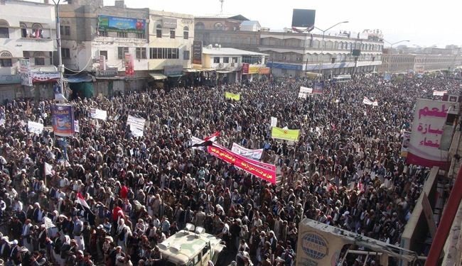 مسيرات حاشدة في صنعاء رفضا للحصار الجائر على اليمن الذي تفرضه السعودية