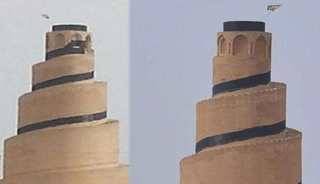 راية الامام الحسين (ع) فوق ملوية سامراء تثير غيض الطائفيين والتكفيريين