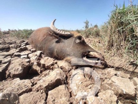نشر عالم آثار المناظر الطبيعة في مجلس الدولة للآثار والتراث، عقيل المنصراوي، الأحد (20 حزيران 2021)، صورة تظهر نفوق جاموس في أهوار جنوب العراق نتيجة قطع المياه عن الأهوار.