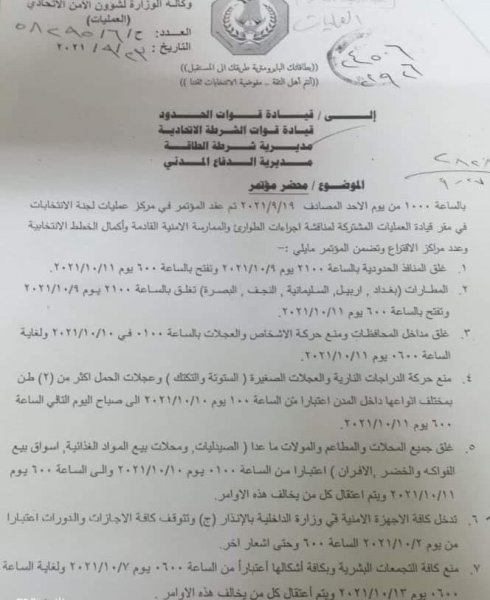 ينشر مصدر صحفي التعليمات الخاصة بيوم الاقتراع، وأظهرت وثائق صادرة عن وزارة الداخلية عدداً من التوجيهات تخص المطارات والمنافذ والدراجات لتأمين الحماية الكاملة للعملية الانتخابية.