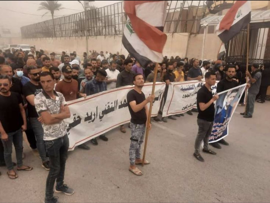وقال مصدر صحفي إن خريجي المعاهد الفنية تظاهروا أمام مبنى حكومة ديالى المحلية، وسط مدينة بعقوبة للمطالبة بالتعيين.