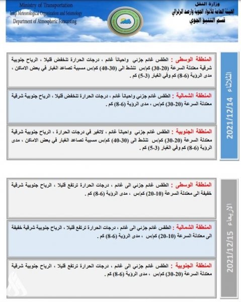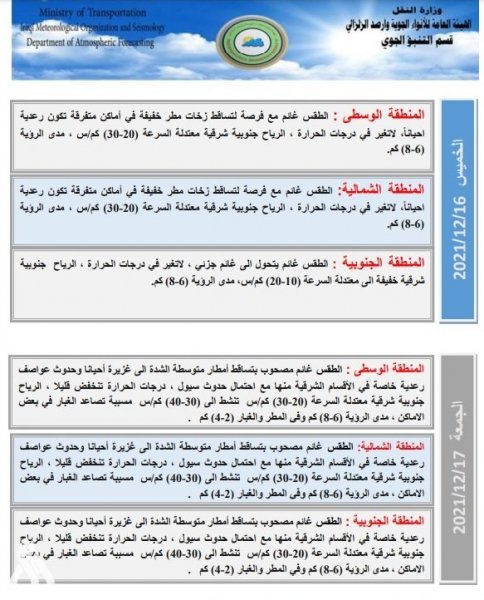 توقعت هيئة الأنواء الجوية، اليوم الإثنين، تساقط أمطار وحدوث عواصف رعدية بدءاً من الخميس المقبل.