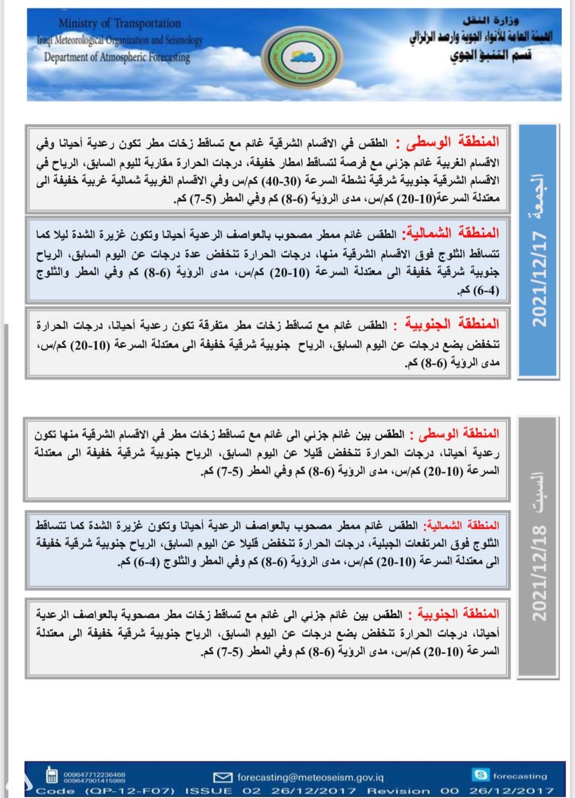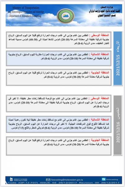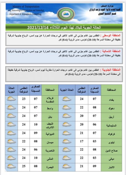توقعت هيئة الأنواء الجوية، اليوم الثلاثاء، تساقط أمطار رعدية في المنطقة الوسطى وثلوج في المنطقة الشمالية.