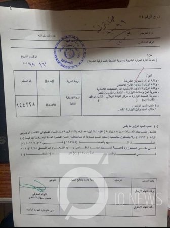 وما جاء في الوثيقة يخالف بيان وزارة الداخلية، الصادر يوم أمس الاثنين، الذي نفى الموضوع واكد انه لااساس له من الصحة.
