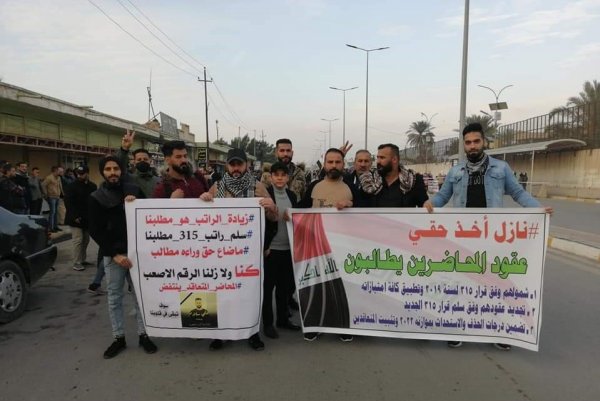 تجدد تظاهرات المحاضرين أمام مبنى محافظة ديالى وقطع شارع حيوي بالكامل (صور)