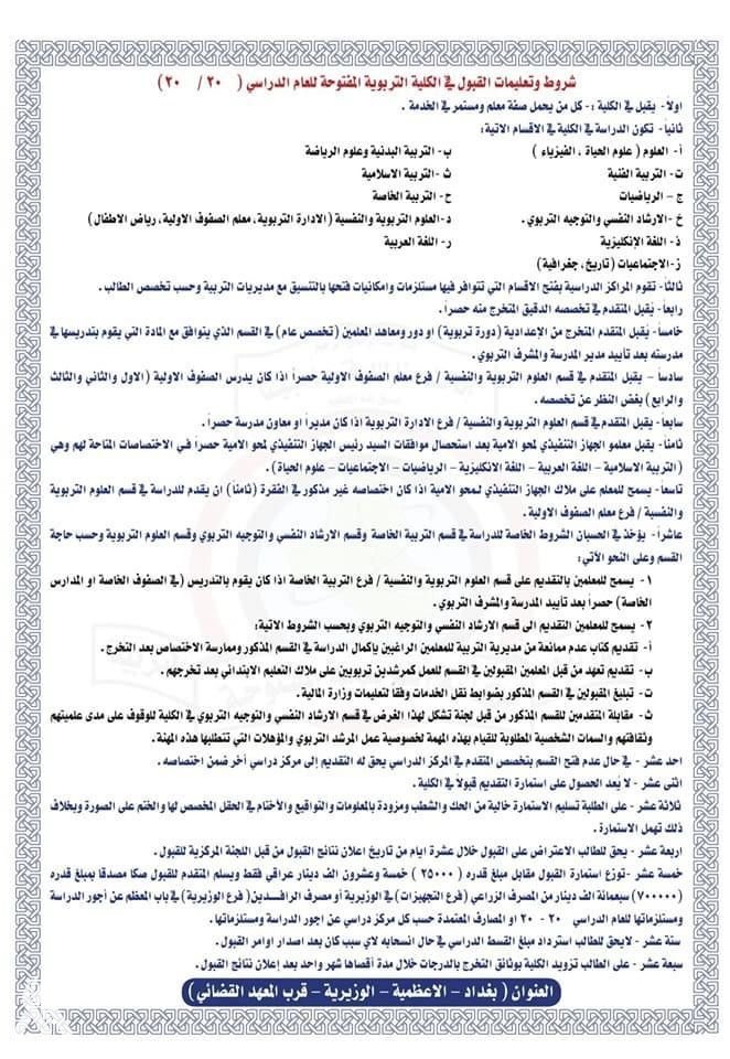 التربية تعلن فتح باب التقديم للراغبين بالدراسة في الكلية التربوية المفتوحة