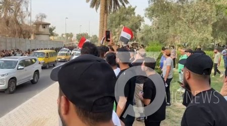 تجمع عشرات المحتجين أمام القنصلية التركية في منطقة الوزيرية وسط بغداد، الخميس(21 تموز 2022).