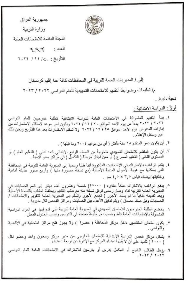 حددت وزارة التربية اليوم الأحد (26 تشرين الثاني 2023) تعليمات وضوابط التقديم للامتحانات التمهيدية (التعليم المهني) للعام الدراسي 2023 -2024.