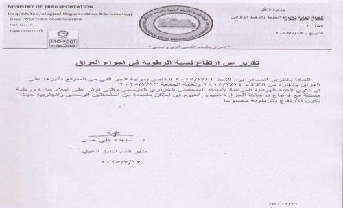 وقال مدير إعلام الهيئة عامر الجابري في تصريح تابعته من كربلاء الخبر: إن "العراق غادر فصل الصيف قبل 1 تشرين الأول ودخل فصل الخريف وحالياً هنالك تذبذب بدرجات الحرارة ما بين ارتفاع وانخفاض".