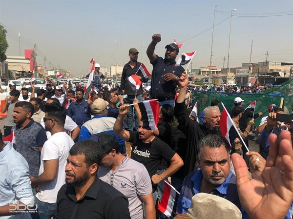 نظم أصحاب الأجور اليومية في دوائر كهرباء البصرة تظاهرة للمطالبة بالتثبيت على الملاك الدائم، أمام دائرة إنتاج الطاقة الكهربائية في المنطقة الجنوبية في منطقة الطويسة وسط محافظة البصرة.