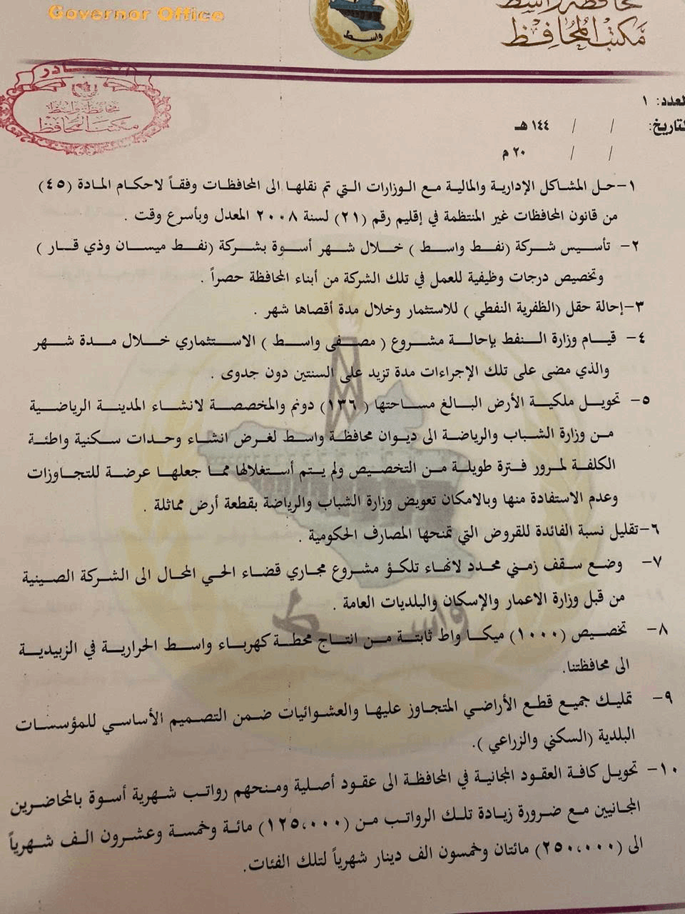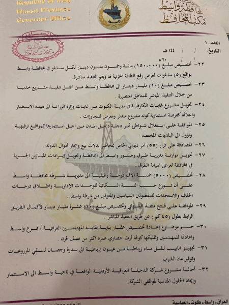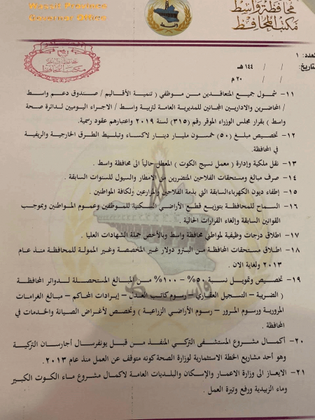 بالوثائق.. مطالب أهالي واسط المقدمة إلى الرئاسات الثلاث
