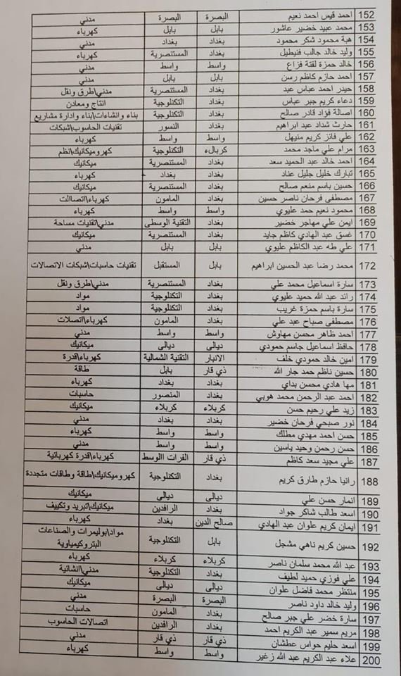 اسماء ‫الوجبة الثانية لخريجي كليات الهندسة المتعينين على ملاك وزارة الدفاع