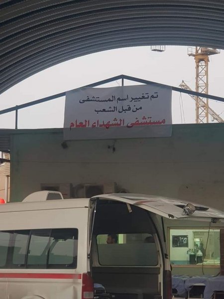 وقال مراسل وكالة من كربلاء الخبر ، إن المتظاهرين في محافظة النجف، قاموا مساء اليوم، بتغيير اسم مستشفى في المحافظة إلى "مستشفى الشهداء".