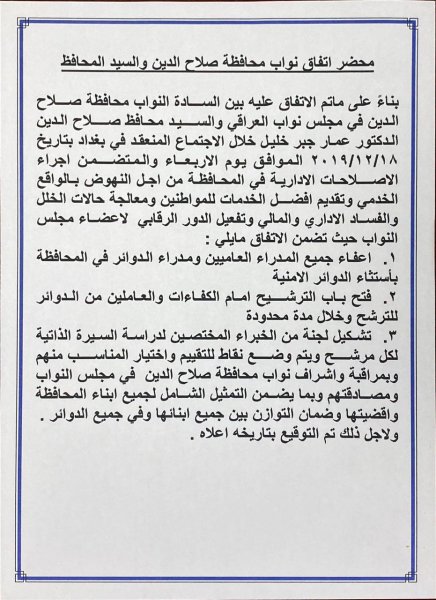 وتنشر وكالة من كربلاء الخبر محضر الاجتماع وتواقيع النواب :