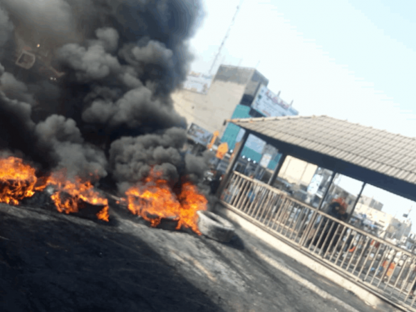 بالصور.. محتجون يقطعون جسر الغراف ويشعلون الإطارات