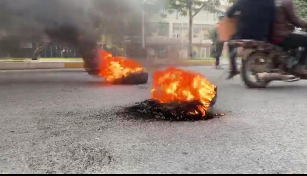 واضاف ان "القطع تم بواسطة الاطارات المحروقة".