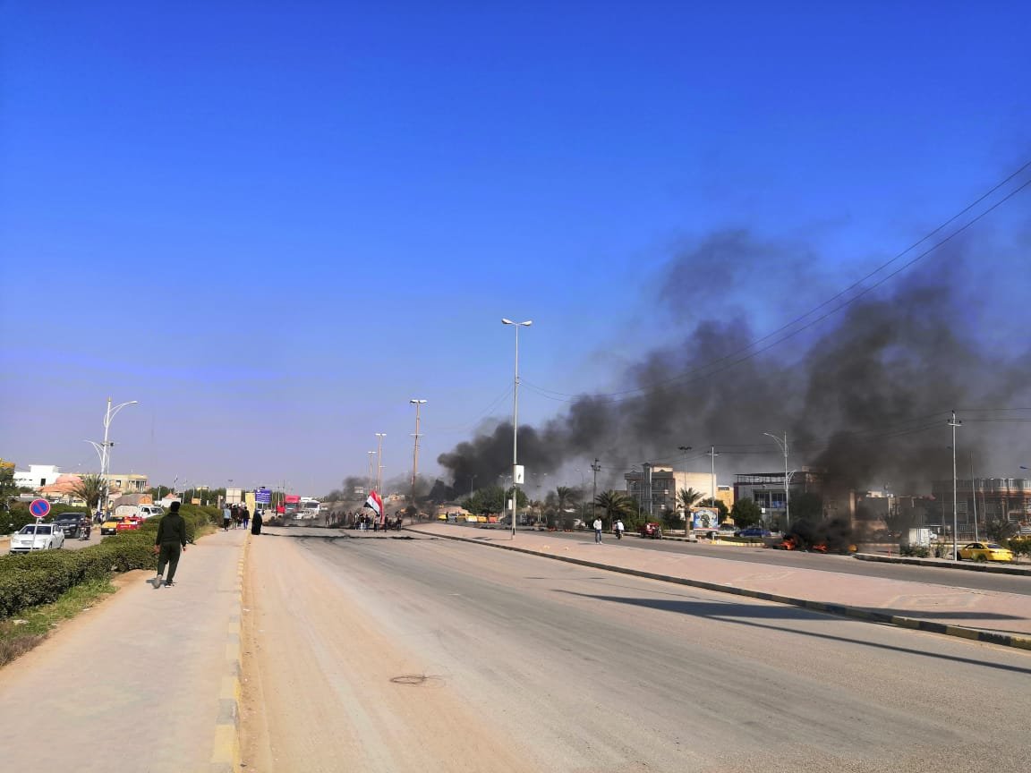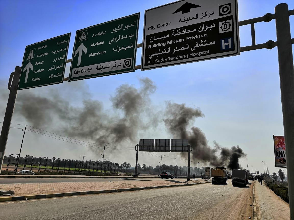 المتظاهرون يقطعون جسرا حيويا وسط ميسان وطريقين رئيسيين شمالها وجنوبها