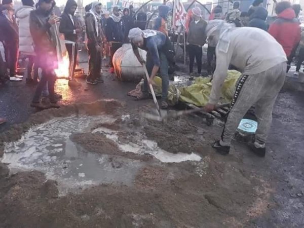 وقال مصدر، ان "المتظاهرين في الناصرية باشروا صباح اليوم ببناء السرادق بالطابوق والبلوك".