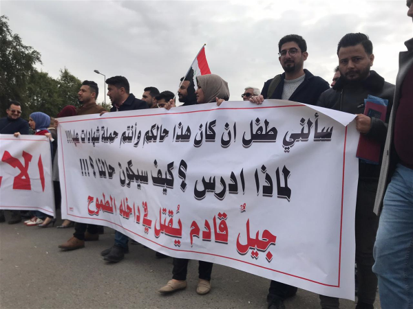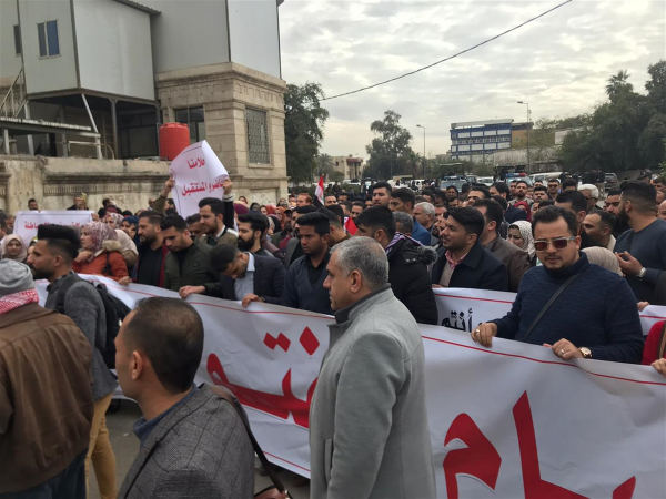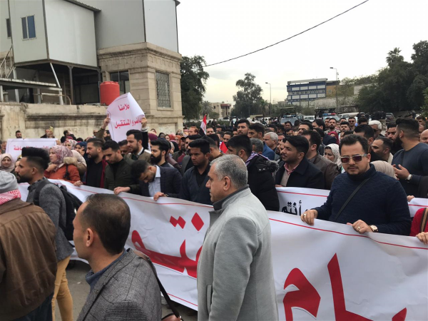 جدد اصحاب الشهادات العليا، اليوم الاحد، تظاهراتهم امام وزارة التعليم العالي والبحث العلمي للمطالبة بتعيينهم.