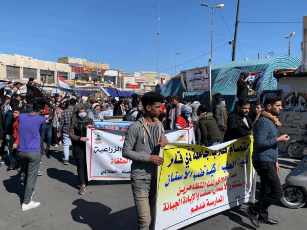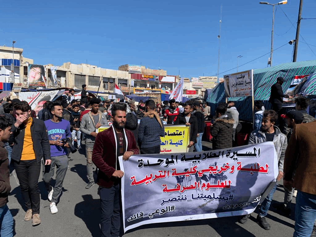 انطلقت مسيرات طلابية في ساحة الحبوبي وسط ذي قار، اليوم الخميس، دعماً للاحتجاجات التي تشهدها محافظات عدة في البلاد منذ أربعة أشهر.