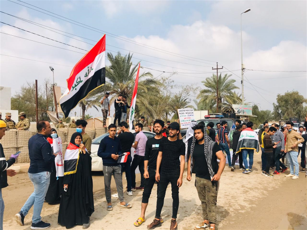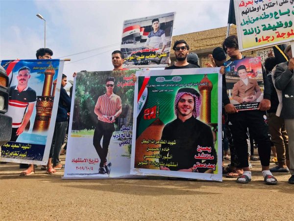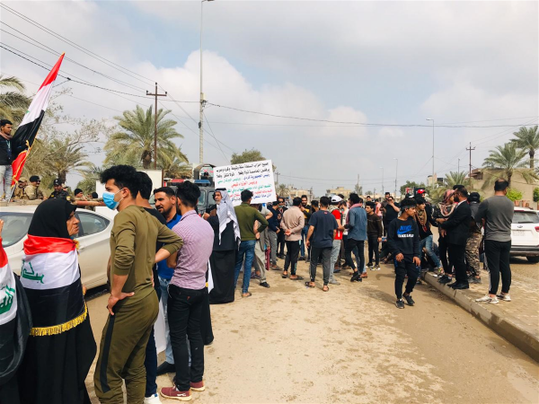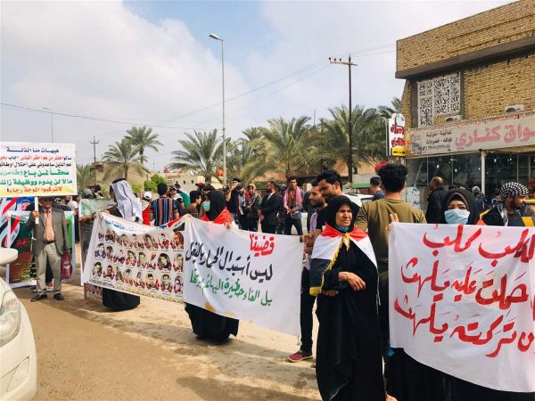 تظاهر العشرات من ابناء الديوانية، الاحد، أمام دائرة ضحايا الارهاب في المحافظة.