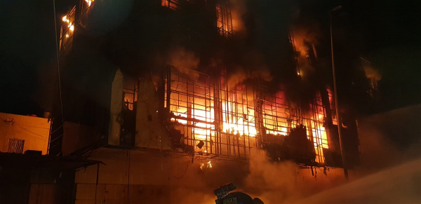 اخماد حريق كبير في عمارة تجارية ببابل