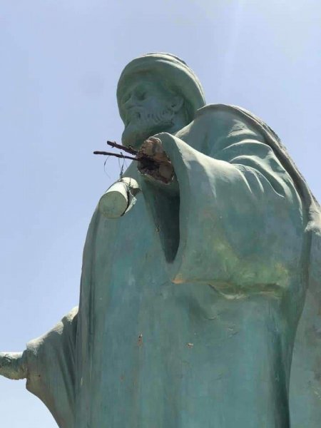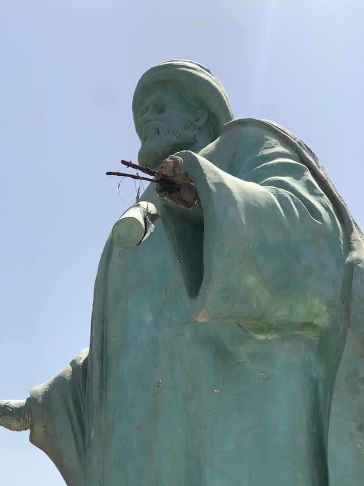 تنشر وكالة من كربلاء الخبر صوراً تناقلها ناشطون على مواقع التواصل الاجتماعي لتمثال رجل الدين والشاعر محمد الحبوبي في الناصرية وقد تعرضت لتخريب.