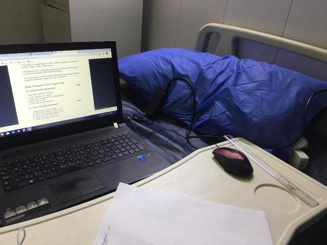 تناقل ناشطون على مواقع التواصل الاجتماعي الفيسيوك، صورة قالوا انها لاحد طلاب الدراسات العليا في العراق وهو يؤدي الامتحان إلكترونياً من داخل أحد مواقع الحجر الصحي.