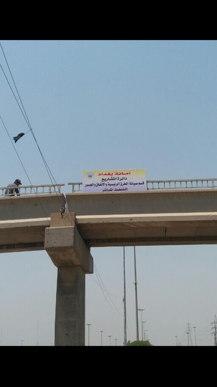 "ان اعمال صيانة عدد من مجسرات المشاة ضمن الطريق السريع الممتد من ساحة اللقاء وحتى مجسر الغزالية مستمرة من قبل ملاكاتنا".