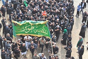 واتجه جموع الزائرين والمعزين ركضاً باتجاه مرقد الإمام الحسين (عليه السلام) وهم يقومون "بلطم" رؤوسهم تعبيراً عن مظهر الحزن لاستشهاد الإمام الحسين.
