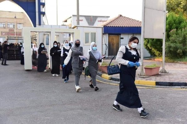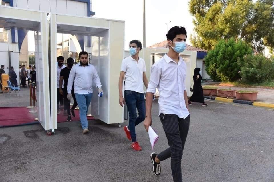 بالصور.. الاجراءات الصحية في اليوم الاول من امتحانات السادس اعدادي