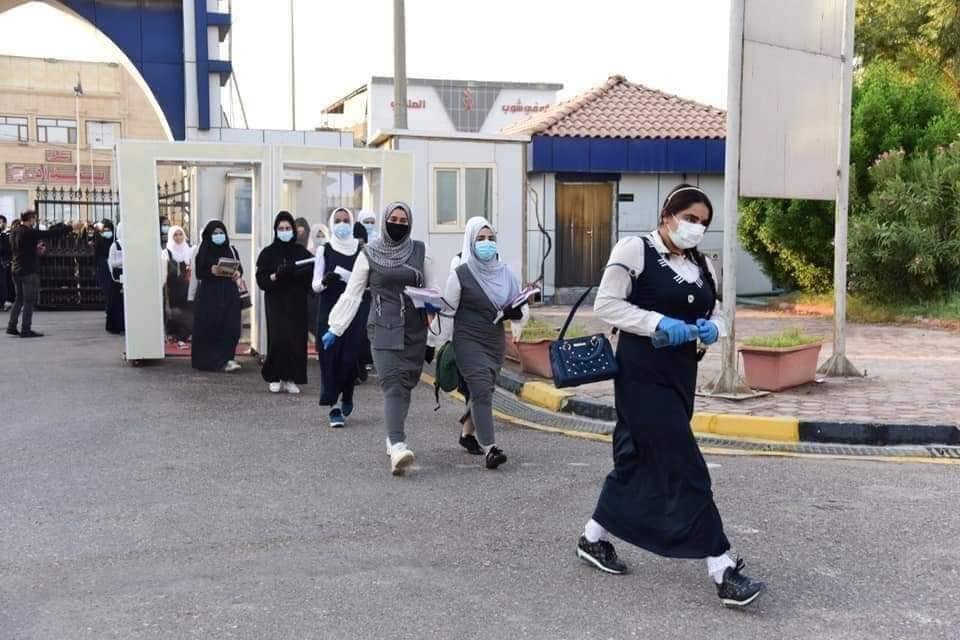 تناقل ناشطون على موقع التواصل الاجتماعي، صورا تظهر فيها الاجراءات الصحية في اليوم الاول من امتحانات السادس اعدادي.