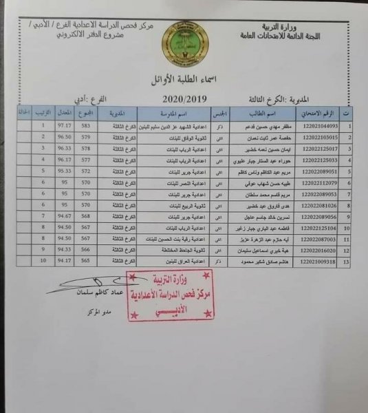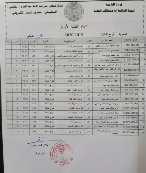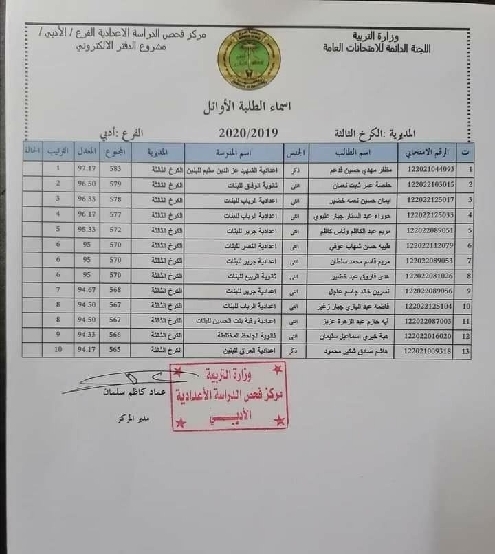 أسماء الطلبة الأوائل في مديرية تربية الكرخ الثالثة