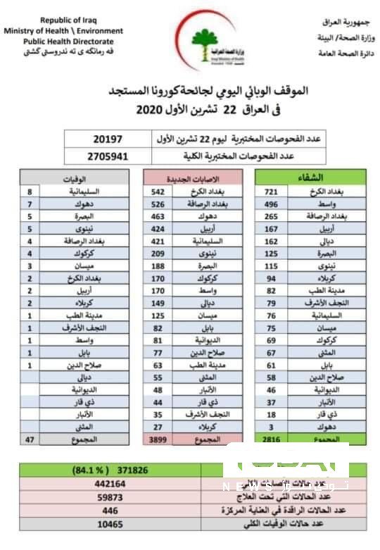 الصحة تسجل 3899 إصابة جديدة بفيروس كورونا