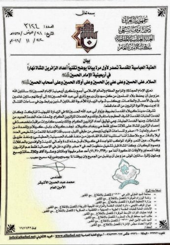 العتبة العباسية تكشف عن عدد الزائرين المتوافدين سيرا لكربلاء خلال 13 يوما