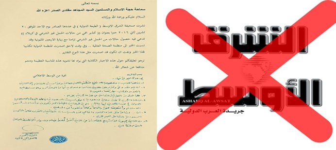الصدر :تقرير "الشرق الأوسط" قذر وسنغلق مكتبها بطريقتنا المعهودة